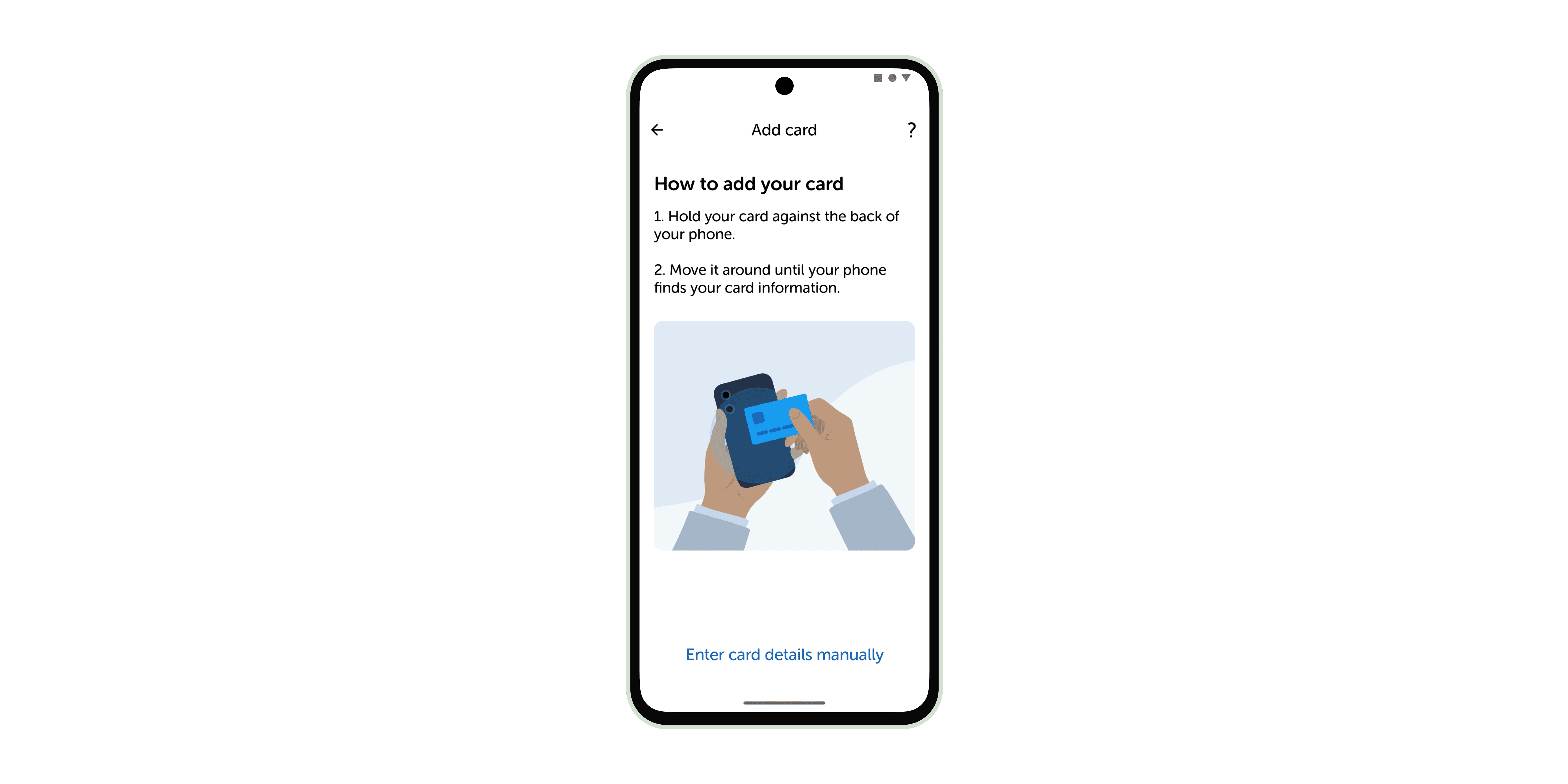 Add your payment card by scanning it's details with your phone's NFC chip